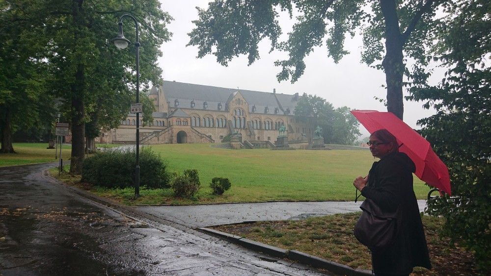 Am ersten Tag haben wir bei 36° gleich die größte Etappe bis Goslar geschafft und in der Früh bei Nieselregen die Kaiserpfalz angeschaut: