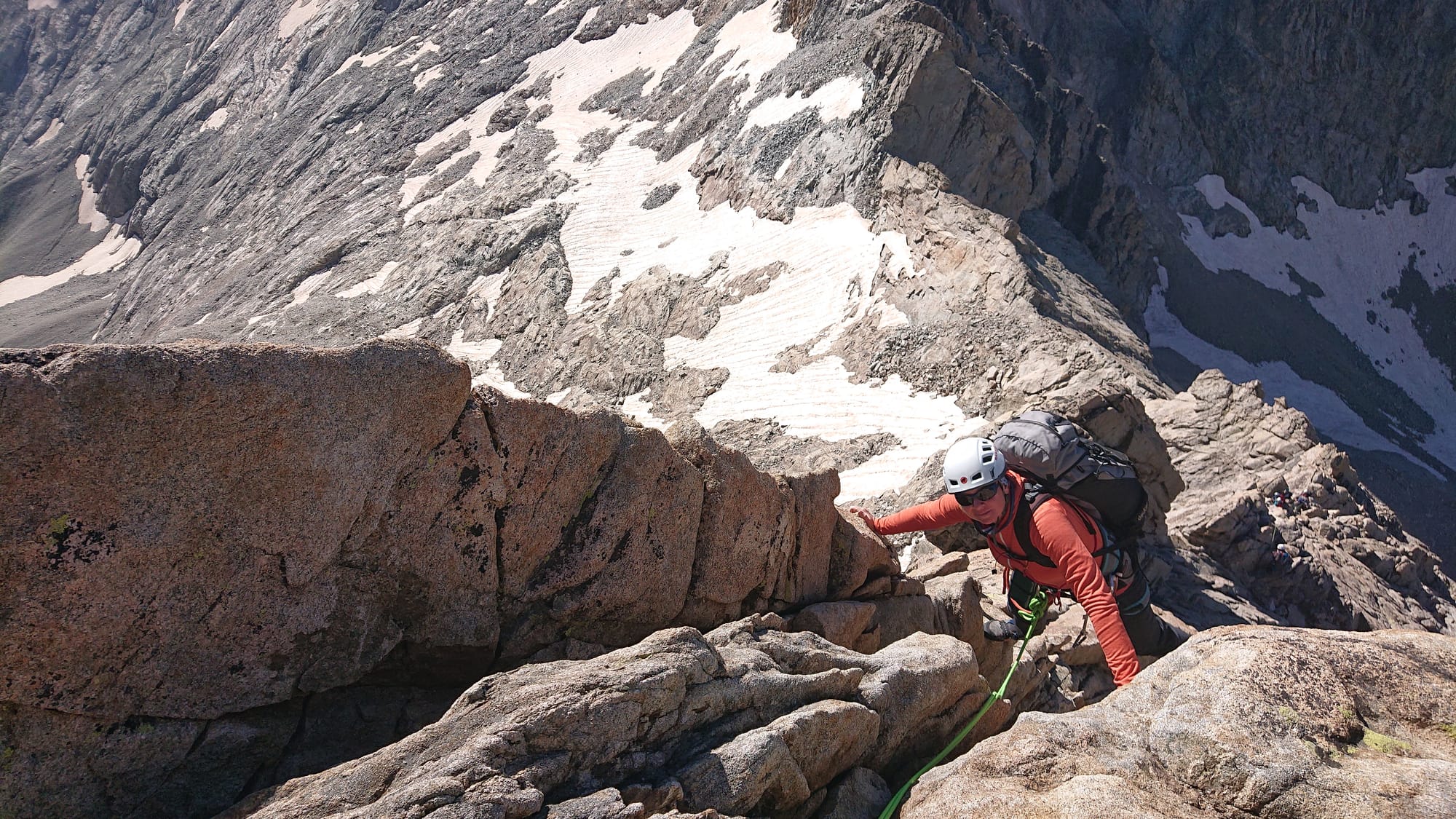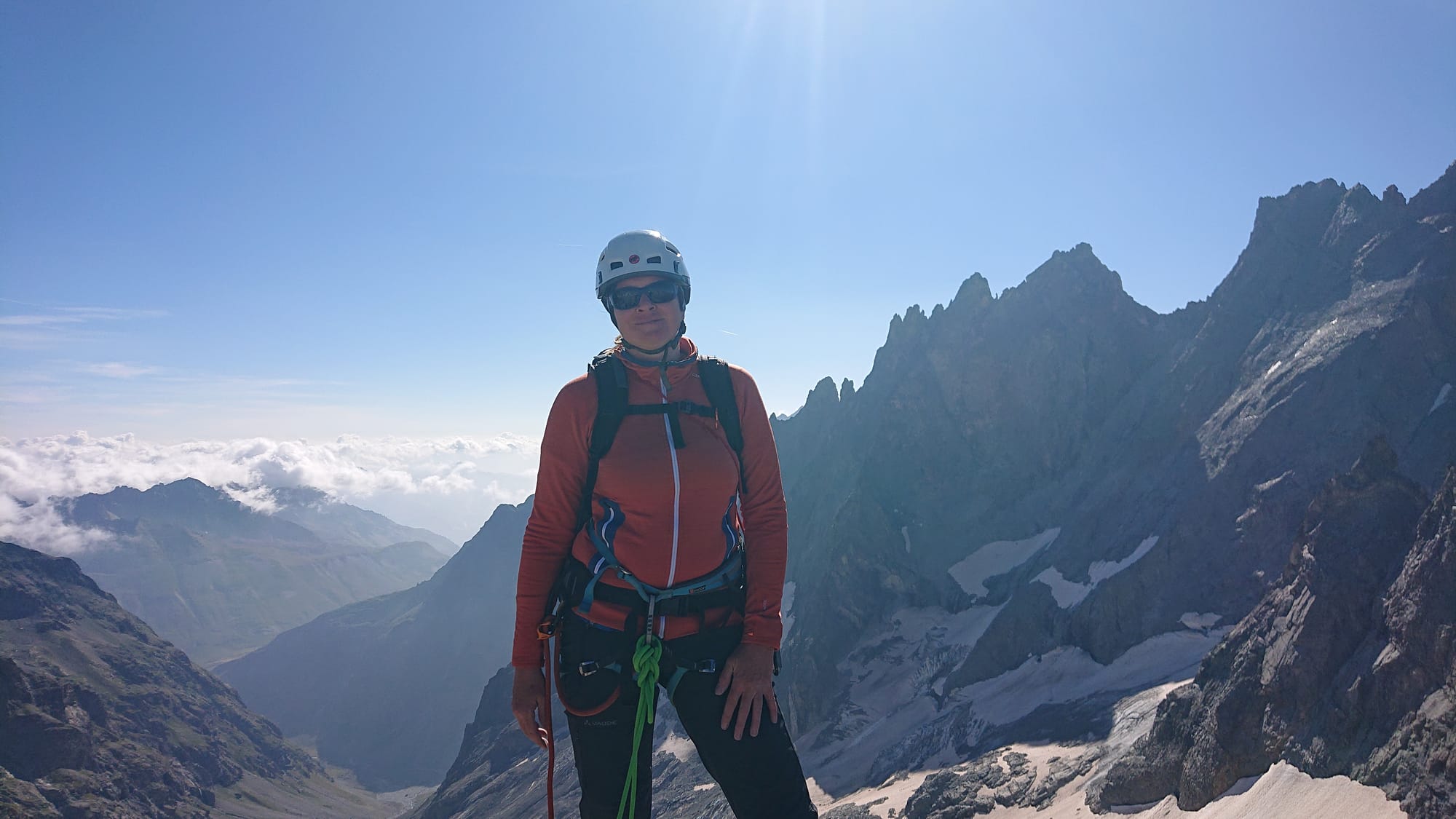 Am nächsten Tag sind wir von der Hütte los auf dem Normalweg auf den Pic Nord des Cavales auf ungefähr 3362m geklettert. Das sind ein paar wunderschöne Seillängen am Südgrat und ein phantastischer Ausblick von oben.
