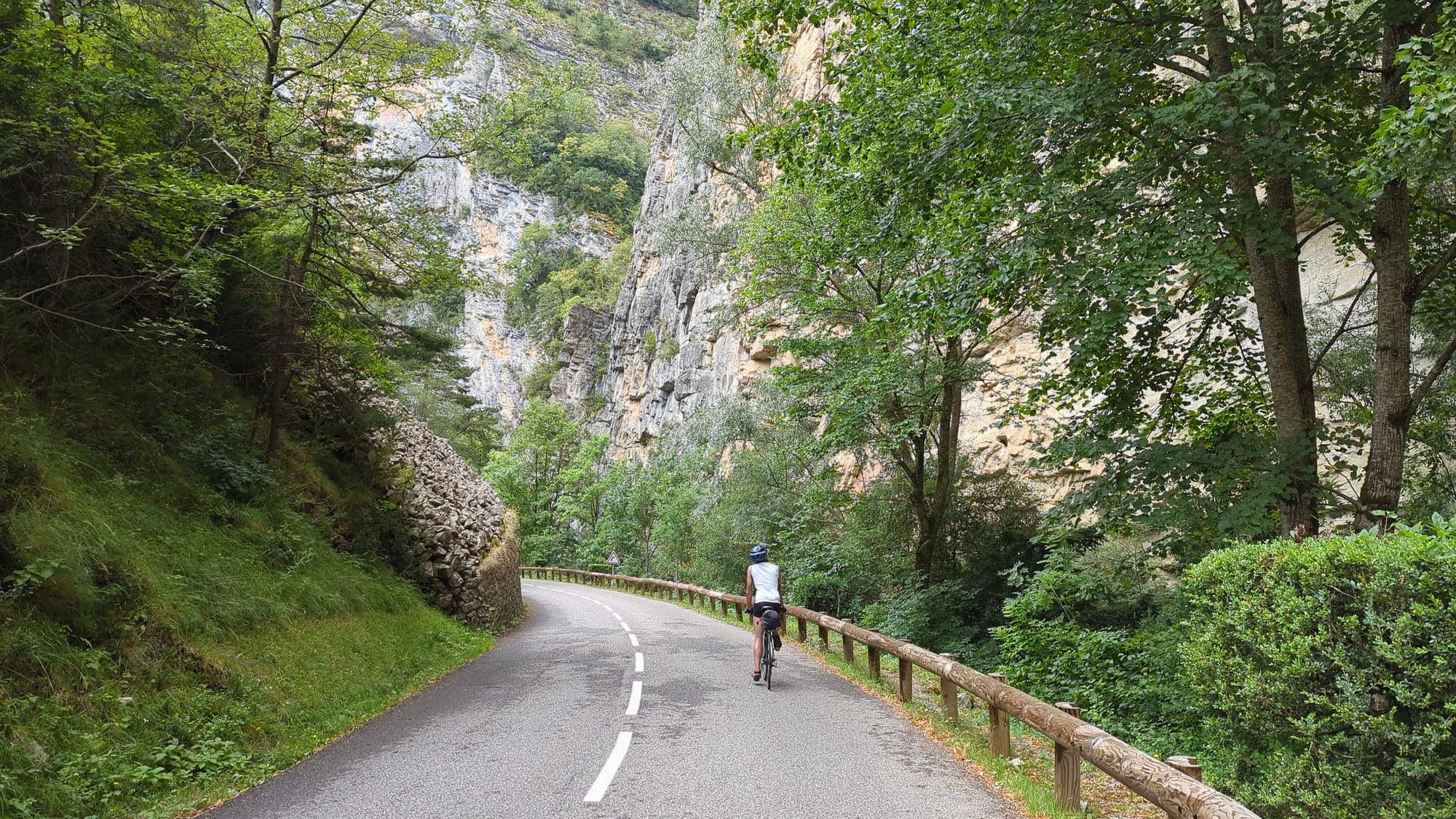 Am Tag drauf sind wir schon wieder mit dem Wecker aufgestanden um vor dem Regen noch Rennrad zu fahren. Wir sind auf einen der vielen Pässe hochgeradelt, da kann man einfach umdrehen, wenn der Regen doch früher als angesagt kommt. War sehr hübsch mit einer kleinen Schlucht, kleinen Sträßchen und fast keinen Autos. Es war ganz schön grau, aber wir haben es vor dem Regen wieder zurück geschafft und uns ein Plätzchen am Bach zum Übernachten gesucht.