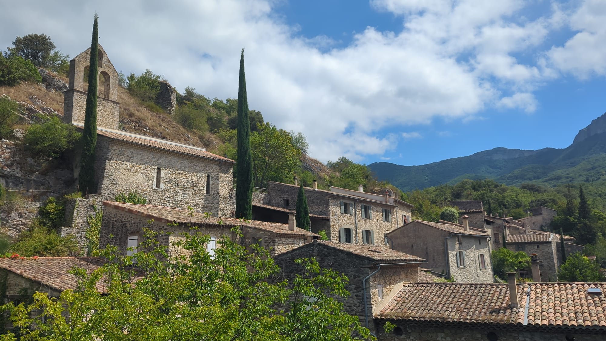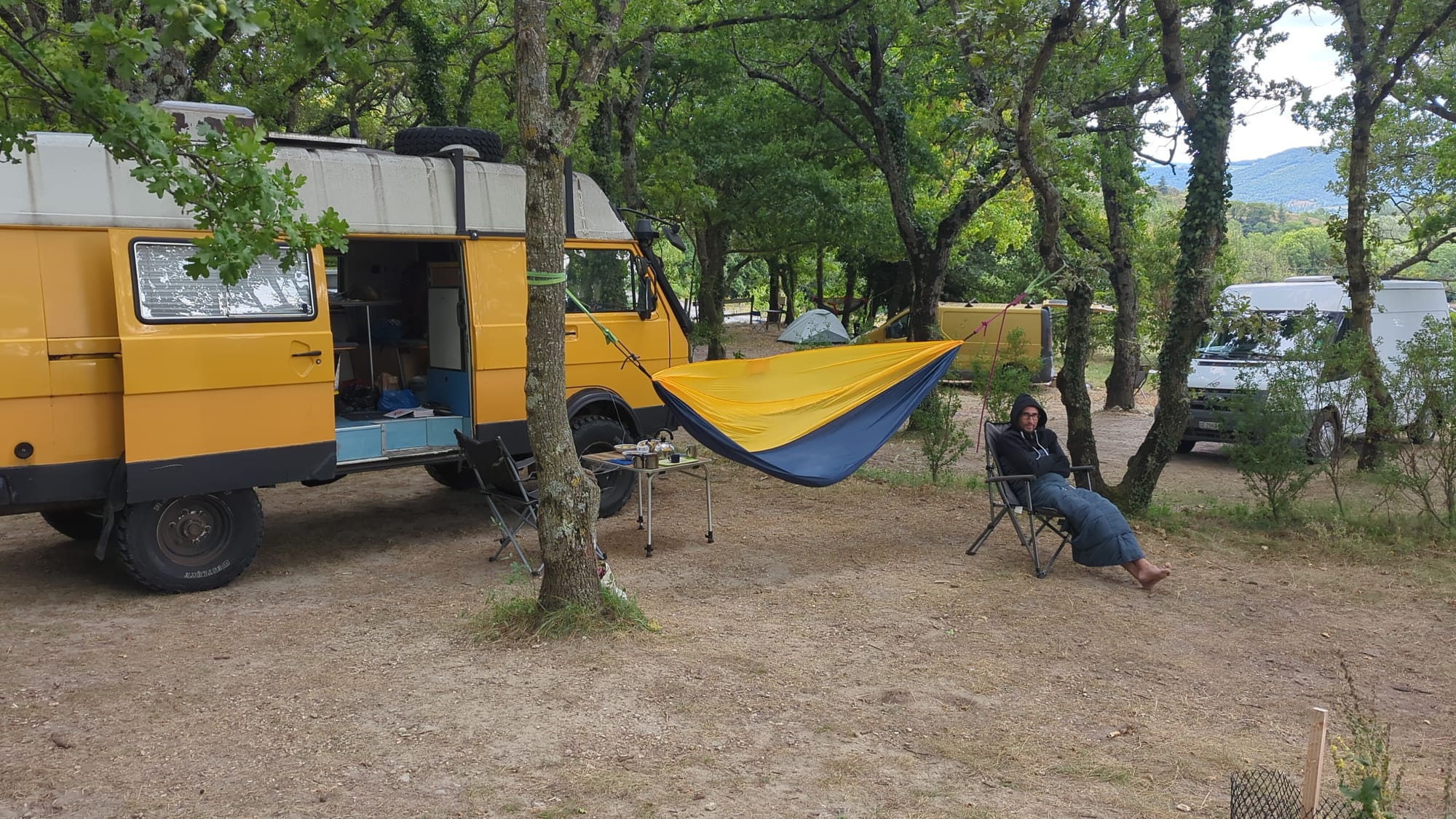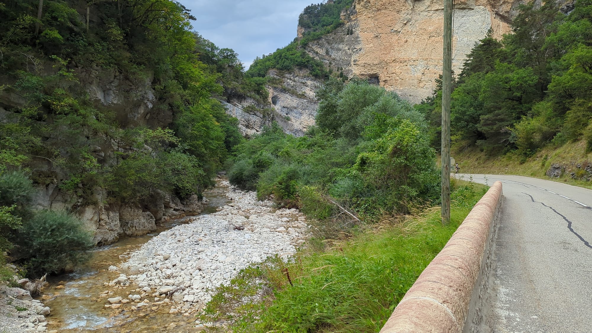 Nachdem wir so schön am Bach gestanden sind, waren wir am Vormittag kurz baden, bevor uns der obligatorische Regen wieder ereilt hat, der den ganzen Nachmittag nicht mehr aufhören wollte. Deshalb sind wir an der Drôme weiter nach Westen bis Crest gefahren und in der Nähe ins Dörfchen Saou, wo wir vor gut 25 Jahren das erste Mal waren.