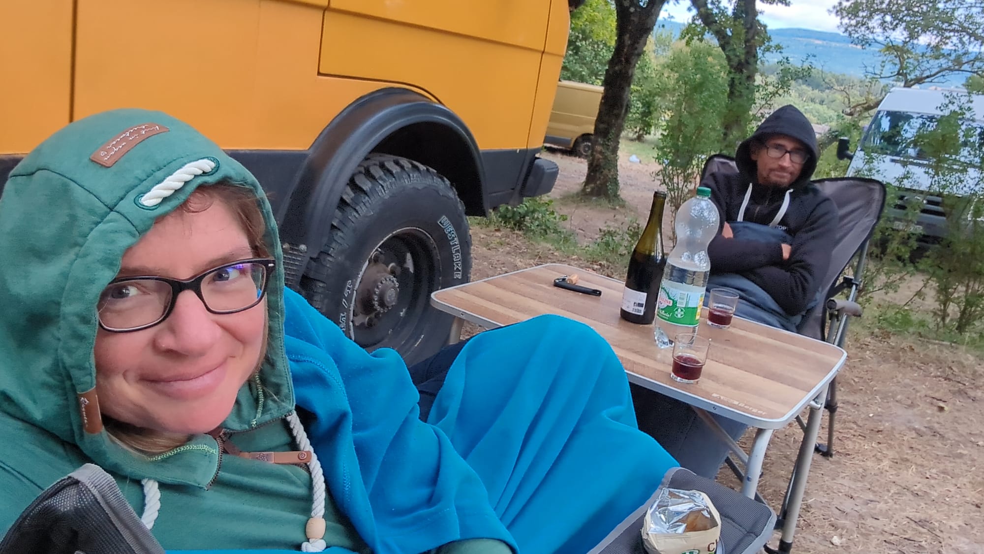 Leider war es dann am Tag drauf grau, kalt und sehr windig, weshalb wir auf einen recht netten Campingplatz umgezogen sind und - für Südfrankreich im August dick eingepackt - Pausetag gemacht haben.