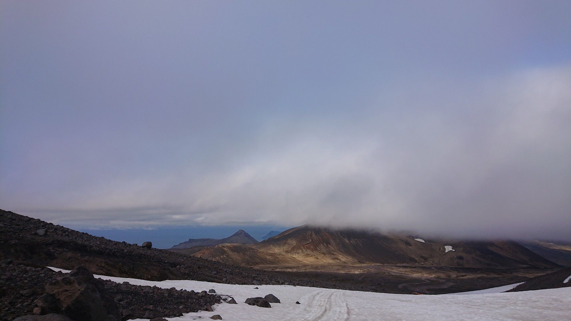 In der Früh waren die Berge in Wolken, der Wetterbericht war für Nachmittag aber gut angesagt. Wir sind dann nach dem Frühstück mal zum Ausgangspunkt für den Snæfellsjökull hochgefahren. Mittags hat's dann tatsächlich langsam aufgerissen und gegen 13 Uhr sind wir dann losgezogen.