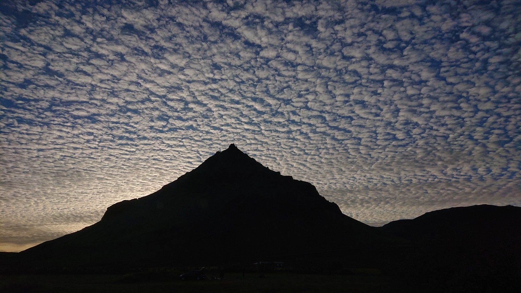 Am Abend hatten wir gehofft, vom Campingplatz aus den Snæfellsjökull sehen zu können, um in der Früh das Wetter dort einzuschätzen, aber der Ausblick wurde leider von dem hier versperrt: