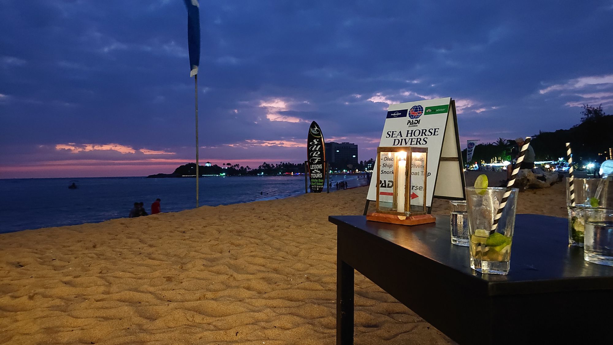 Abendessen gab's dann auch am Strand mit Sonnenuntergang: