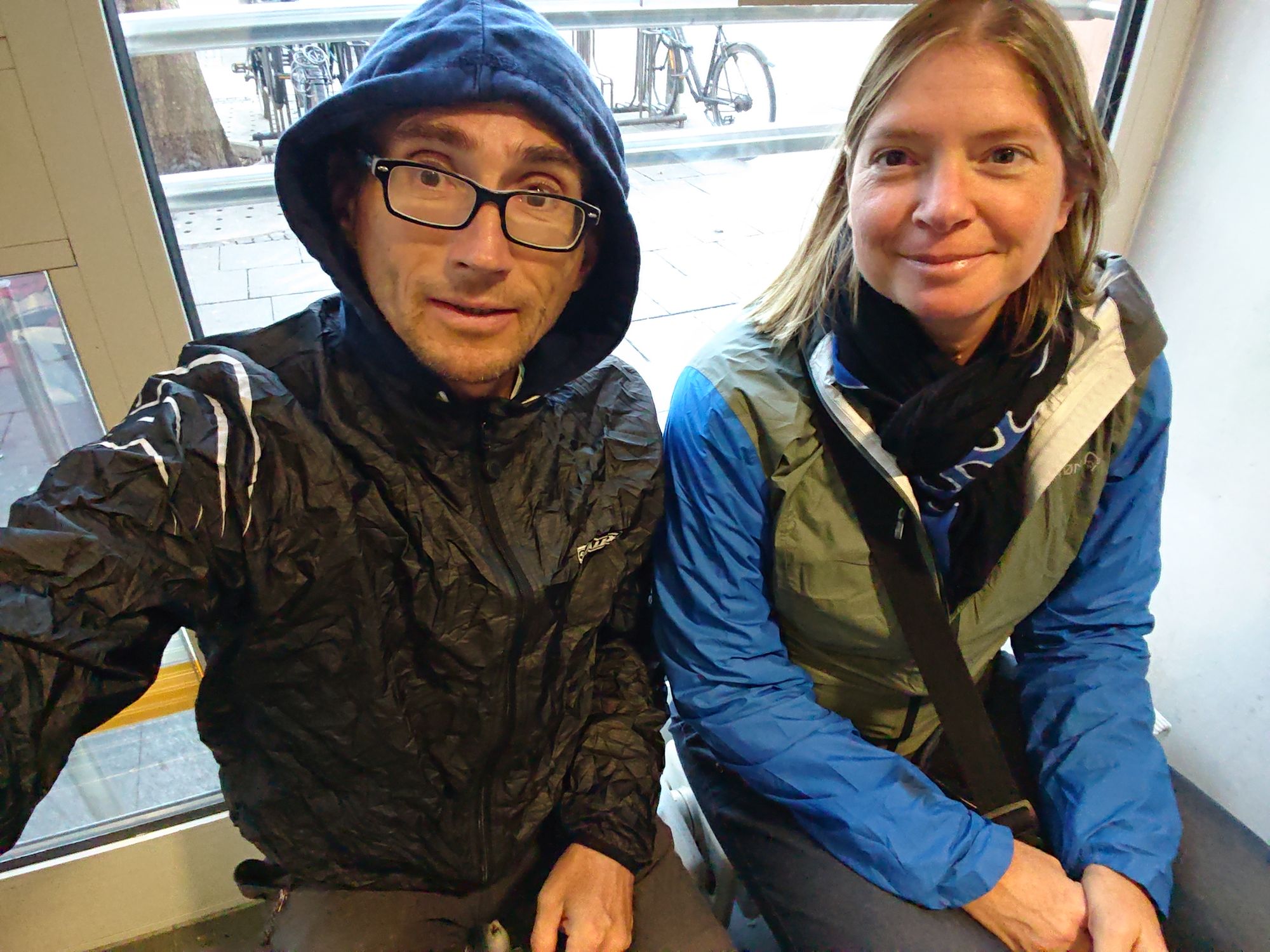Die Wartezeit am Rosenheimer Platz konnten wir im Vorraum einer Bank überbrücken